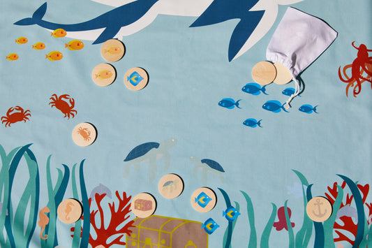 Premium Double-Sided Mermaid & Diving Playmat + Wooden Memory Game – Eco-Friendly, Travel Toy for Kids